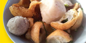 Yang perlu dapat catatan khusus adalah cumi bumbu kuningnya. Cumi putih gendut ukuran besar dimasak serupa semur dengan kuah berbasis kunyit dan kecap manis tipis. Cumi yang digunakan cukup segar, mengingat warung ini berada lebih dari 30 kilometer dari laut terdekat. Masakan sederhana ini jadi semakin menarik ketika diaduk dengan nasi dan pecahan kerupuk aci putih. Tekstur cumi yang kenyal lembut seolah beradu dengan kerupuk renyah yang mulai layu tersiram kuah. Yang agak mengherankan di Ceu Emi adalah masakan berbasis daging dan ayam ternyata tak bisa tampil semantap ikan mas-nya. Sekali lagi, tahan godaan dan tetapkan hati pada ikan mas.
